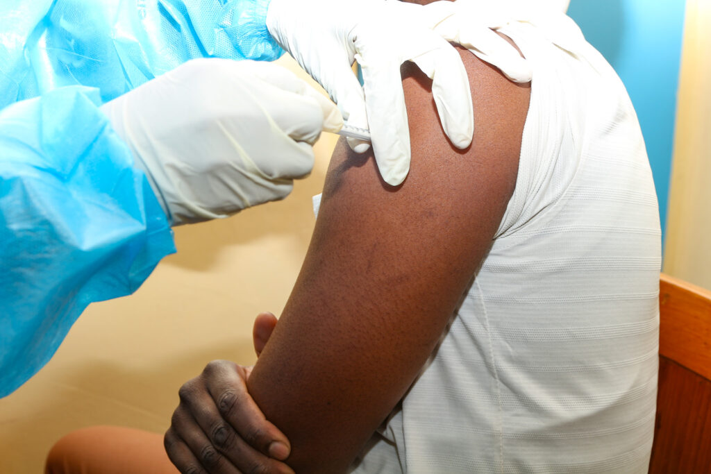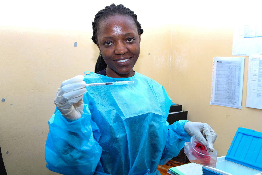 Martha Tembo, a nurse at the CIDRZ-run Matero Clinical Research Site, administers the first dose of the SUNSHINE Phase 1b trial for the InvaplexAR-Detox/dmLT shigella vaccine on 23 June 2025 in Lusaka, Zambia.