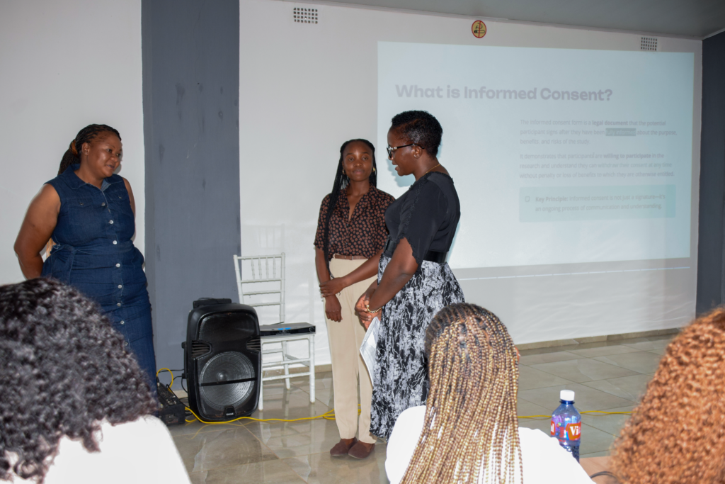 Facilitated by Ms Fridah Madyabi, Senior Research Nurse, and Ms Beenzu Hamuhuma, Study Coordinator, the session emphasised that informed consent is an ongoing process, not just a signature.